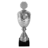 Metalen cup op zwarte voet.