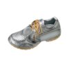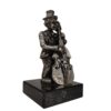 Kleine metalen clown met bekkens op marmeren voet. Hoogte 12 cm.