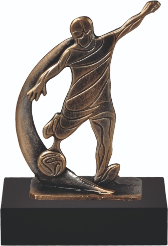 Metalen beeld Voetballer op zwarte voet.